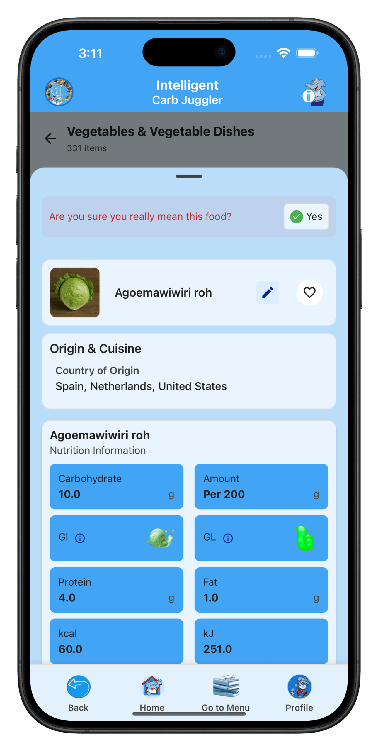 Die iCJ-App hilft Ihnen, Kohlenhydrate, Kalorien, Fett,